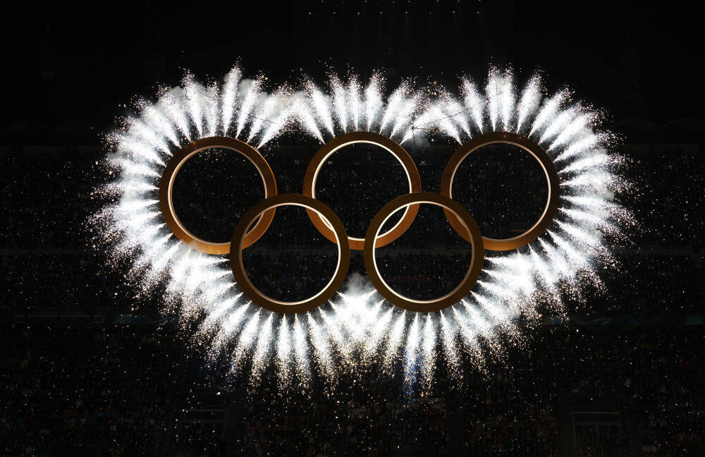 这是2月6日拍摄的开幕式现场的奥运五环。新华社记者 薛宇舸 摄