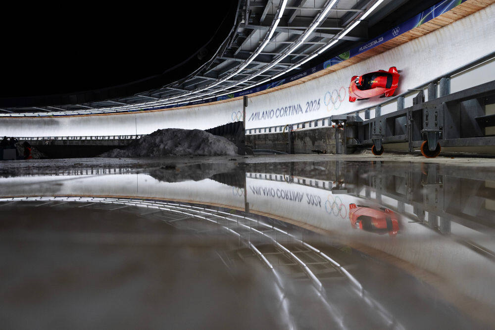 2月12日,中国选手殷正在钢架雪车项目男子单人赛第一轮比赛中。新华社记者 丁旭 摄