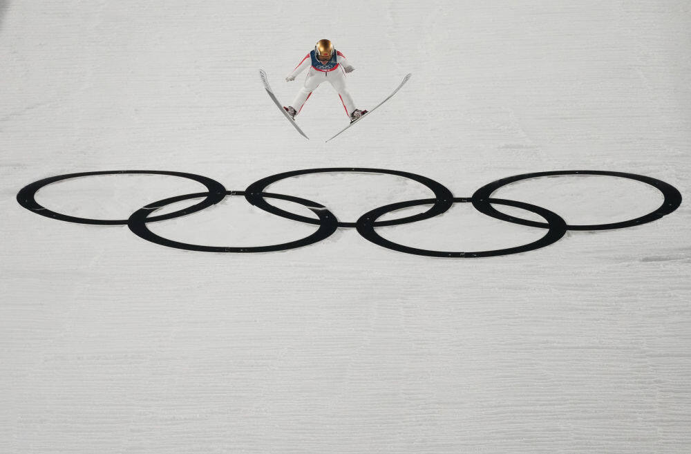 2月9日,中国选手宋祺武在跳台滑雪项目男子个人标准台比赛中。他晋级决赛,刷新了中国选手在该项目上的历史最好成绩。新华社记者 黄伟 摄