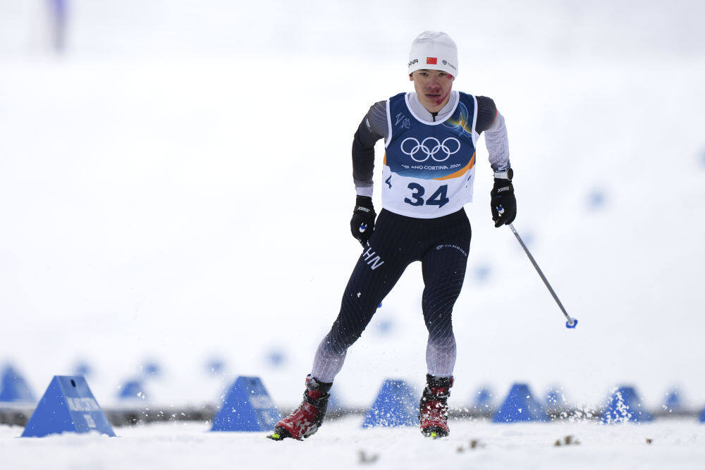 2月11日,中国选手赵子贺在越野滑雪比赛中。他受伤后依旧坚持完赛。新华社记者 彭子洋 摄