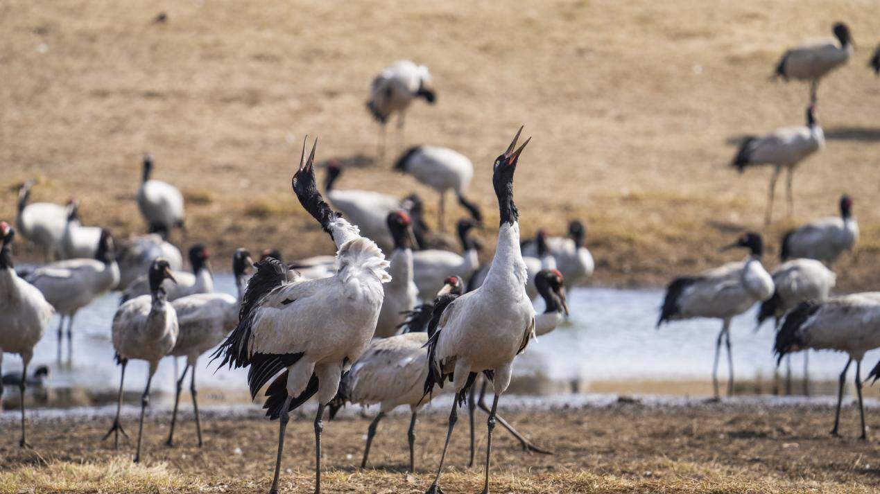 此外,当地持续深入的宣传教育,让爱鹤护鸟日益成为人们的自觉行动。管护局与村民共同组建巡护队,构建起“地上有人巡、空中有天眼”的群防群治网络。通过引入卫星追踪、环志研究等科研成果,管护工作得以更加精准高效,相关经验也为全球候鸟保护贡献着“中国智慧”。保护的种子也已播撒进校园——由联合国计划开发署等机构支持的“小鹤学堂”项目,通过“课堂+场馆+野外”的沉浸式教学,真正让“保护黑颈鹤,从娃娃抓起”。