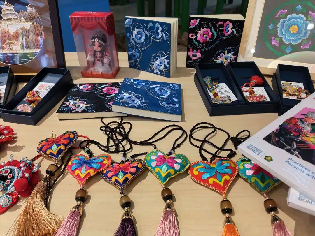 30余件由残疾绣娘精心创作的彝绣文创产品整齐陈列,荷包、笔记本、挂饰等物件,针脚细密、纹样精美,引得外国友人纷纷驻足欣赏。活动还同步开展主题宣传推介,以残奥精神为纽带,讲述残疾绣娘自强不息的中国故事,以国际盛会为窗口,充分展示千年彝绣非遗的东方之美。