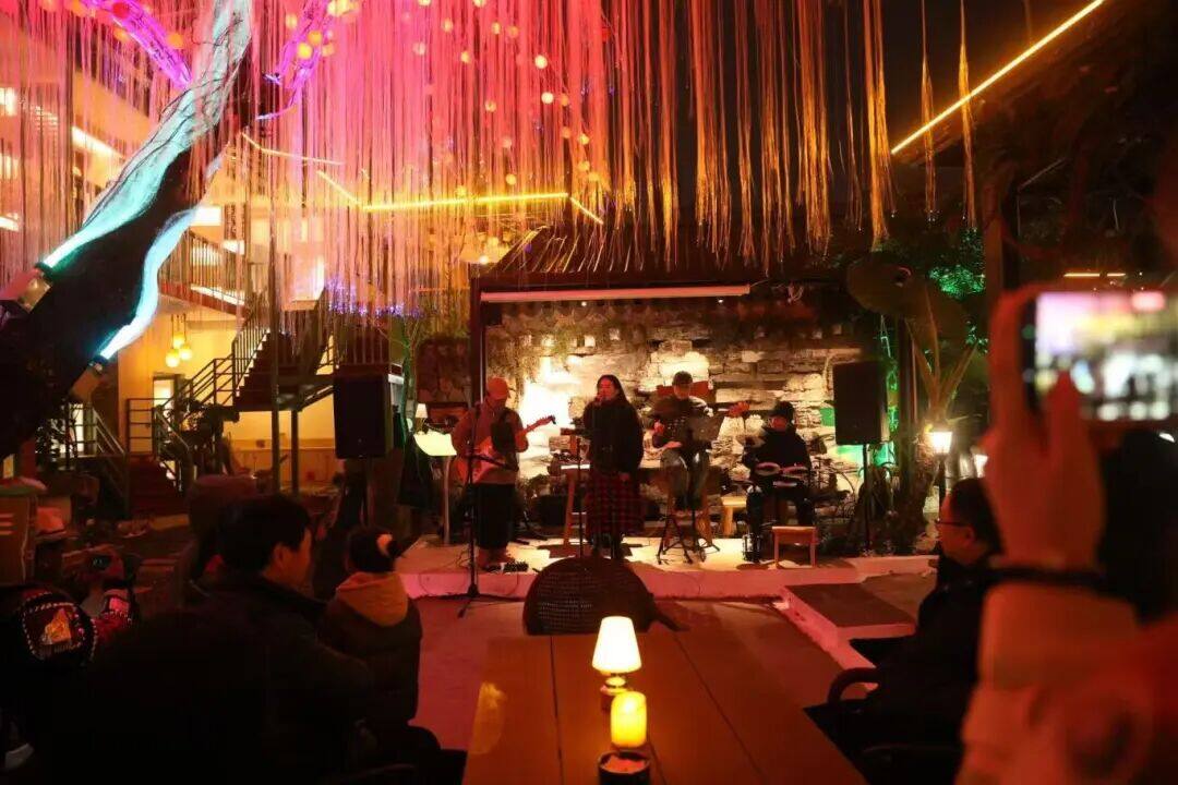 走进“花海一号”,岁月质感与现代美学扑面而来。始建于上世纪70年代的橡胶厂,曾是罗平地方工业的重要印记,因产业调整长期闲置,砖墙斑驳、设备尘封、院落荒芜,成为城市角落的“沉睡资产”。罗平县紧扣全域旅游发展布局,以“工业遗存活化+文旅业态植入”为路径,不拆房、不推平、不大拆大建,完整保留斑驳的墙体、工业廊道等历史肌理,将生产车间改造为开放体验区,将仓储空间变身餐饮与音乐现场,将闲置院落打造为露天电影广场与休闲露台,让老厂房“修旧如旧、焕新不丢魂”。
