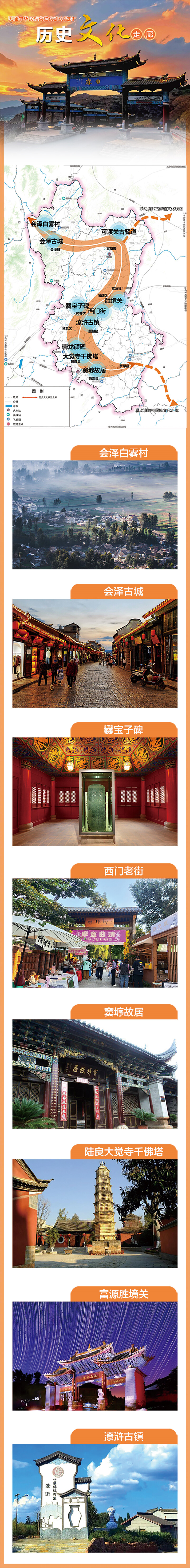 曲靖有着3000多年的文明史、2000多年的建制史。先秦时期的八塔台古墓群,秦修五尺道、汉置郡县、爨治南中500余年、大理国时期的石城会盟。留下会泽古城、白雾村、胜境关、爨宝子碑和爨龙颜碑、西门老街,更有窦垿,桂涛声等文化名人。依托这条走廊,更加铸牢中华民族共同体意识,让民族团结进步之花常开常盛。