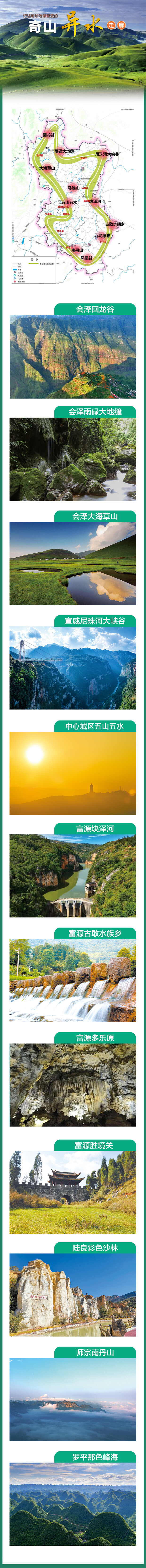 曲靖境内从北向南高原山地、盆地、河槽、湖泊交错镶嵌,在乌蒙山统领下,“一山十二脉”西高东低脉脉相连;在长江、珠江环绕下,“两江百流千湖”南北纵横经纬交织,将曲靖塑造成为集高山、峡谷、河流、湖泊、喀斯特于一体的“世界山水博物馆”。依托这条走廊打造探险自然,感悟生命的绝佳胜地,让滇东高原雄阔包容的自然禀赋充分展现。