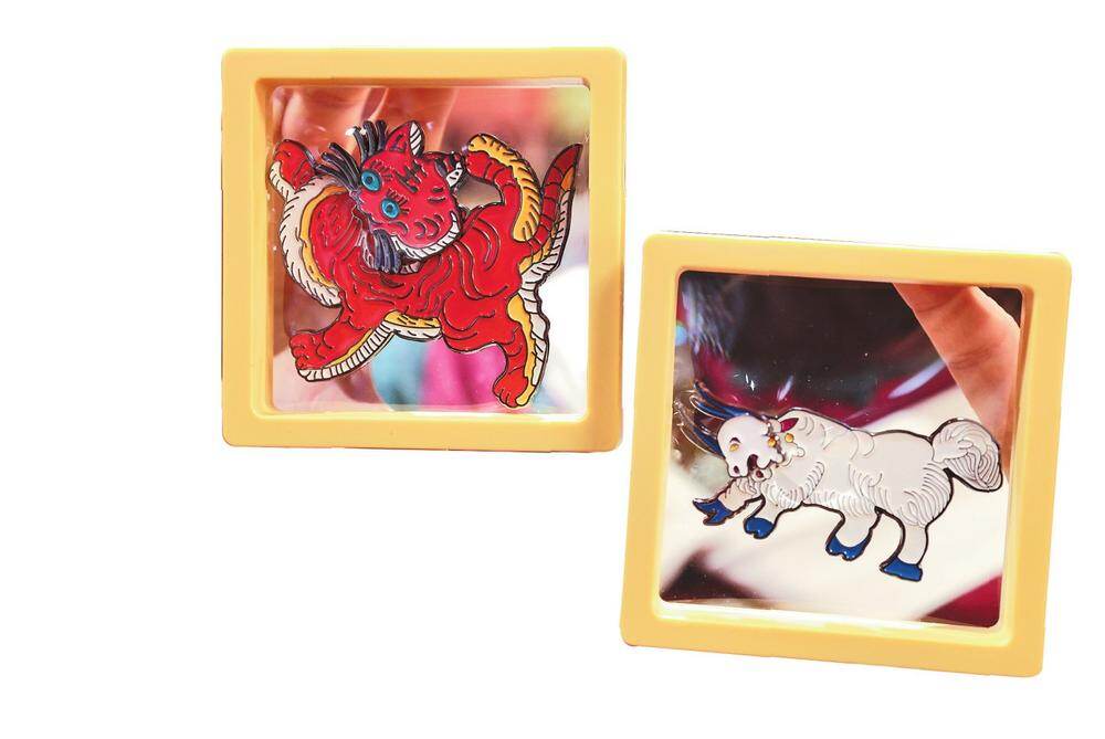 木府内的红虎、白牦牛图腾文创产品。