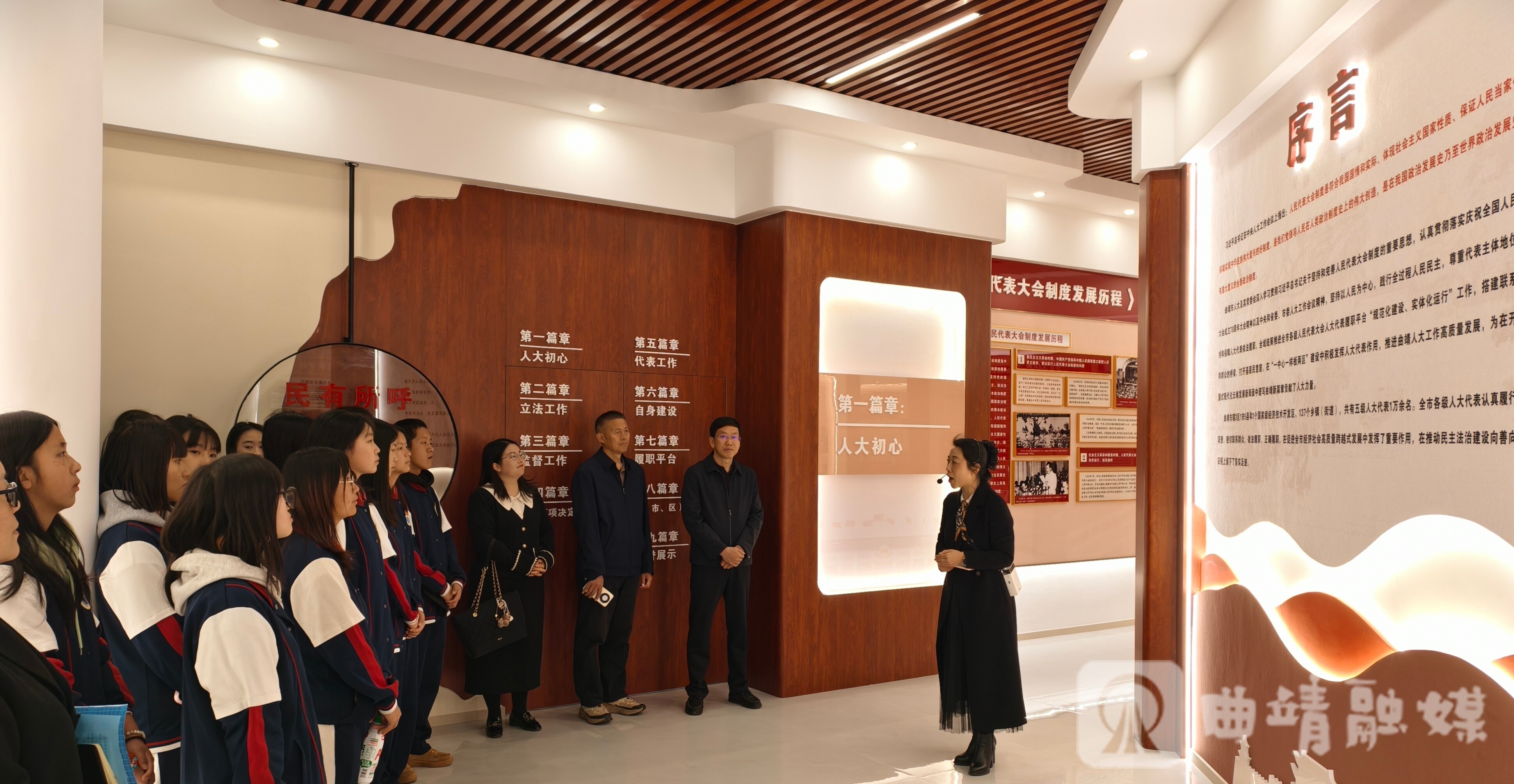 曲靖融媒讯(记者 李南南 张懿)3月19日上午,曲靖财经学校40余名学生代表及10名教师走进曲靖市人大常委会人大代表之家,开展思政实践活动,探寻人民代表大会制度发展脉络,感受全过程人民民主在曲靖大地的生动实践。