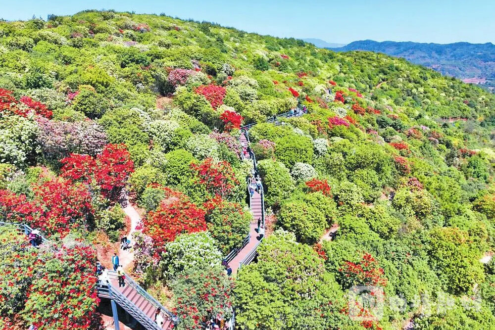 罗平高海拔山间的油菜花海依旧金浪翻涌,马龙晚樱如云似霞,会泽梨花漫山如雪,珠江源、东山林间的马缨花与高山杜鹃热烈绽放,桃花、海棠缀满枝头。
