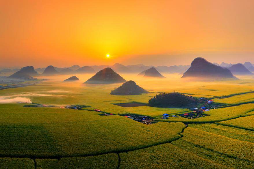 当车子驶入罗平,窗外的一切都开始变得不真实起来。身后翻滚的金色花浪能将你衬托得像画中人。那一刻,你才明白什么叫 “被春天正面击中” 。看那群山起伏如浪,近花翻涌似潮,远山如黛,大地流金。这里的浪漫,盛大却无声,美得让人心醉。