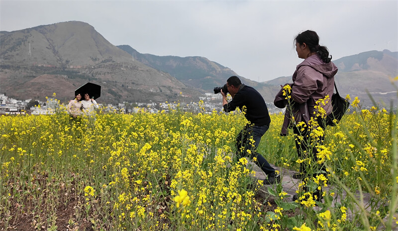 三月,会泽县娜姑镇白雾村,金灿灿的油菜花与青瓦土墙的古村相映成趣,宛如一幅生动的田园画卷。“三八”国际妇女节这天,花田里格外热闹,镇上的女职工和村干部们在这里开展活动,笑声阵阵。