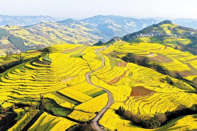 春回大地,万物复苏。罗平县近百万亩油菜花如期盛放,金色花海与峰林、村舍交相辉映,勾勒出“世界最大的自然天成花园”的壮美画卷。花海间游人如织,村落里民宿满客,厂房中菜籽油飘香。小小的油菜花已从农业作物蝶变为融合一二三产业的“美丽经济”,成为罗平各族群众增收致富的“幸福产业”。
