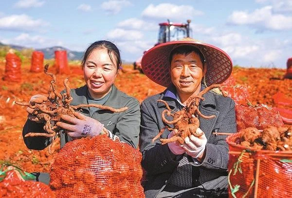 作为云南魔芋产业的核心产区,富源魔芋拥有百年种植历史,目前全县魔芋种植面积达 15 万亩,占全国 7.5%,建成 6 个万亩种植乡镇、30 个千亩连片基地,培育出 80 余家加工企业、9 家龙头企业,构建起从种植、加工到销售、服务的完整全产业链,实现了魔芋产业从基地建设到下游产品开发的一条龙布局。