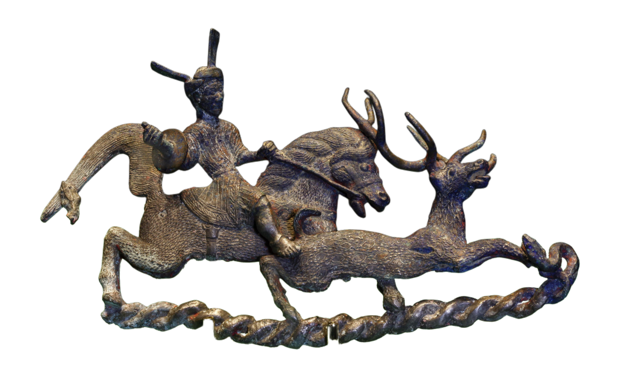 一名滇国骑士正在骑马猎鹿
