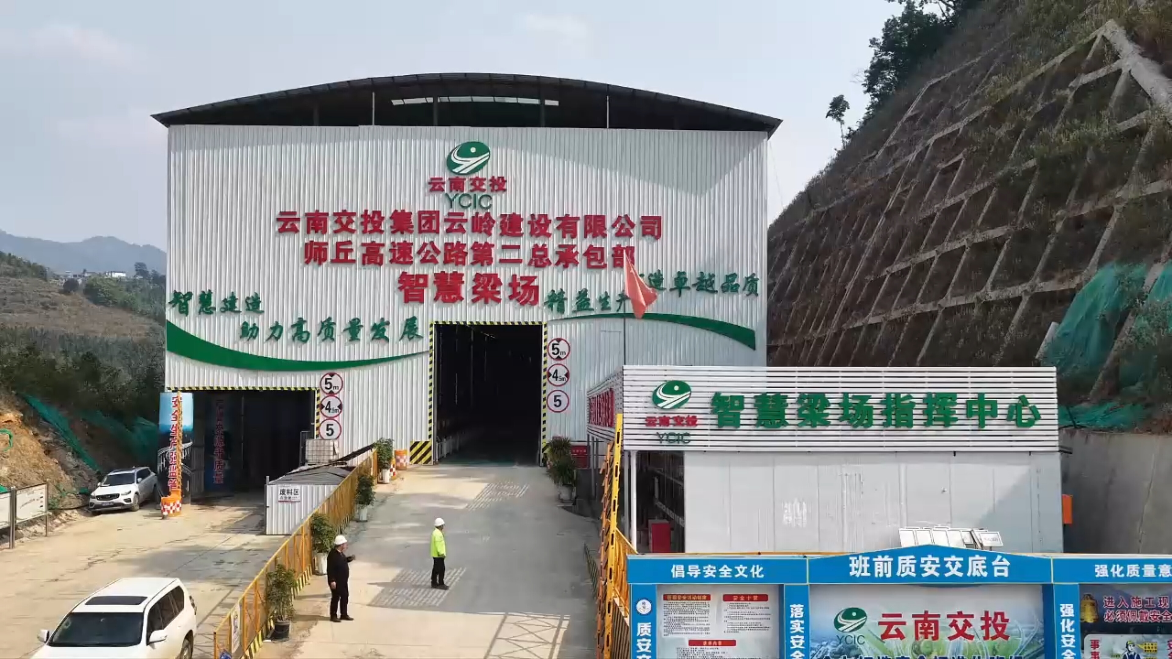 师丘高速公路全长91公里,是曲靖和文山路网建设的重点项目之一。其中,曲靖段路线全长69.81公里,控制性工程包括主跨180米、墩高160米的南盘江特大桥,以及4座3公里以上的特长隧道。项目桥隧比高、穿越高山深谷与生态敏感区。面对高原山区场地狭小、生态约束强、梁片预制量大、传统工效不足的核心瓶颈,项目率先使用全省首个智慧梁场,以数字化、智能化技术破解施工痛点,成为项目提速增效、品质创优的核心引擎。
