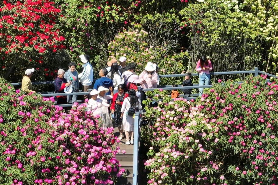 每年3-4月,都是恩洪花海的高光时刻!漫山遍野的高山杜鹃开得热烈烂漫,红的、白的、黄的,26个品种错落交织,还有上百年的大树杜鹃点缀其间,从山脚铺到山顶,像打翻了调色盘,随手一拍都是无需修图的氛围感大片,堪称滇东春日顶流美景!这场文旅推广周,更是将这份美好直接拉满~