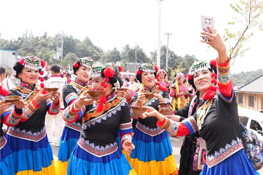 活动当天仪式感十足!一进门就有众多民族民间歌手和队伍现场一展风采,还会递上醇香迎宾酒,一句句热情问候,让人瞬间卸下疲惫,沉浸式感受东山的淳朴烟火气。紧接着,精彩文艺节目轮番上演,歌声、舞蹈搭配花海美景,既有本土民俗韵味,又有活力满满的现代演绎,在歌声与舞蹈中传递民族文化的独特魅力!