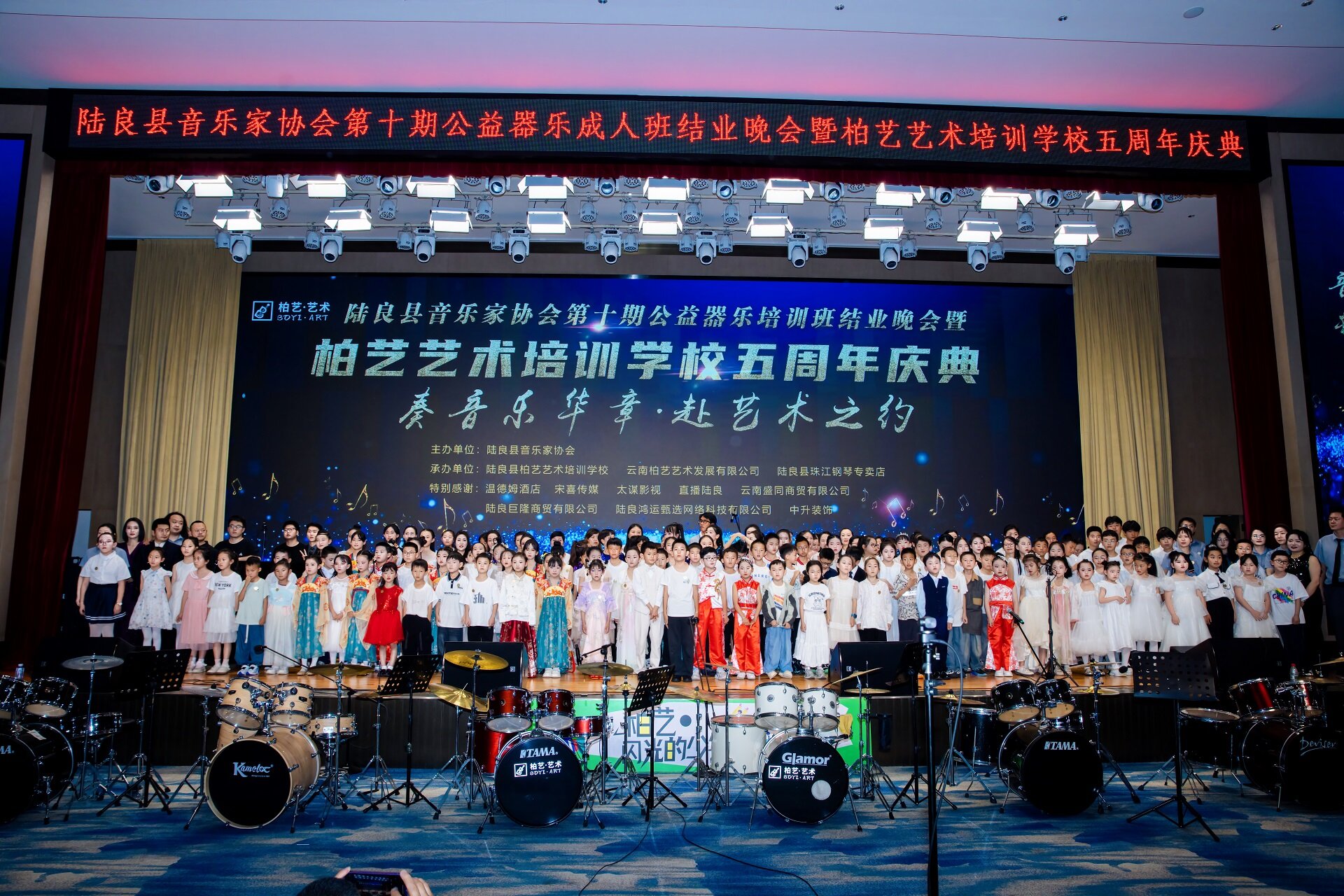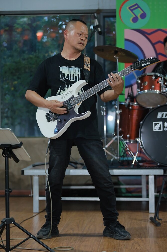 深耕艺术教育二十载,方程始终把“传承文化、培育新人”刻在心底。2020年,他创办柏艺艺术培训学校,开设古筝、吉他、架子鼓等多元音乐课程,为青少年搭建艺术启蒙的摇篮。更难得的是,他打破艺术教育的年龄壁垒,创新推出公益成人班,至今已开办十一期,让1000多名基层群众圆了音乐梦,在陆良搭起全民共享的艺术交流平台。为让乡土艺术教育有章可循,他潜心编撰教材,2020年推出《吉他教程》,2023年带领教师团队完成《架子鼓教程》,用本土化、实用化的教学内容,为陆良艺术教育筑牢根基。