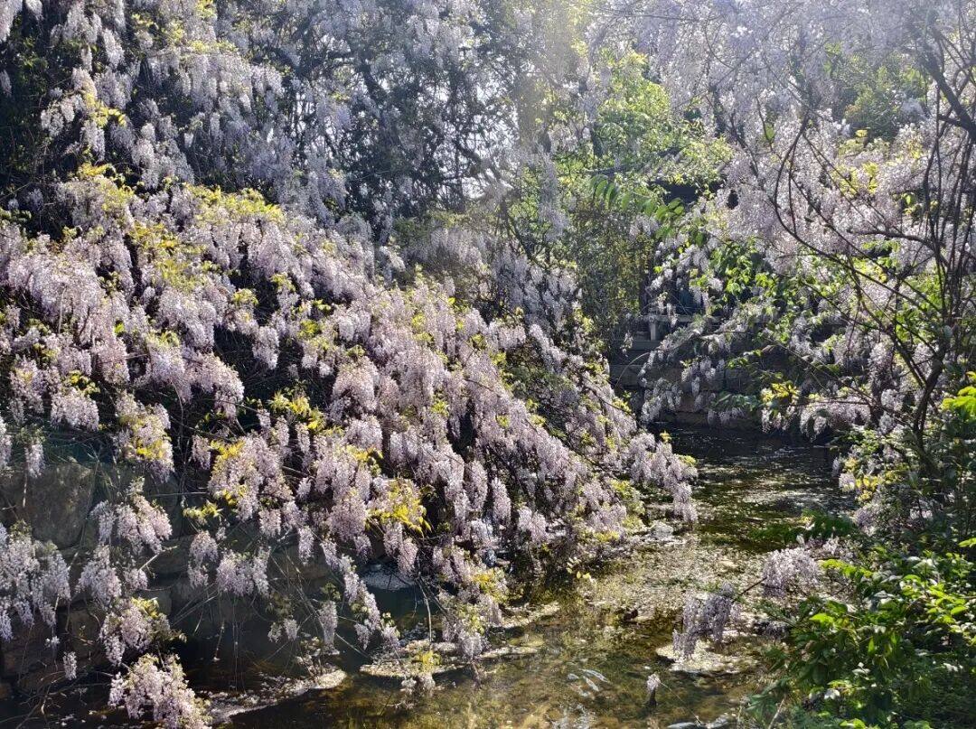 紫藤花期将持续至 4 月中旬,眼下正值盛放期,正是观赏打卡的黄金时段。