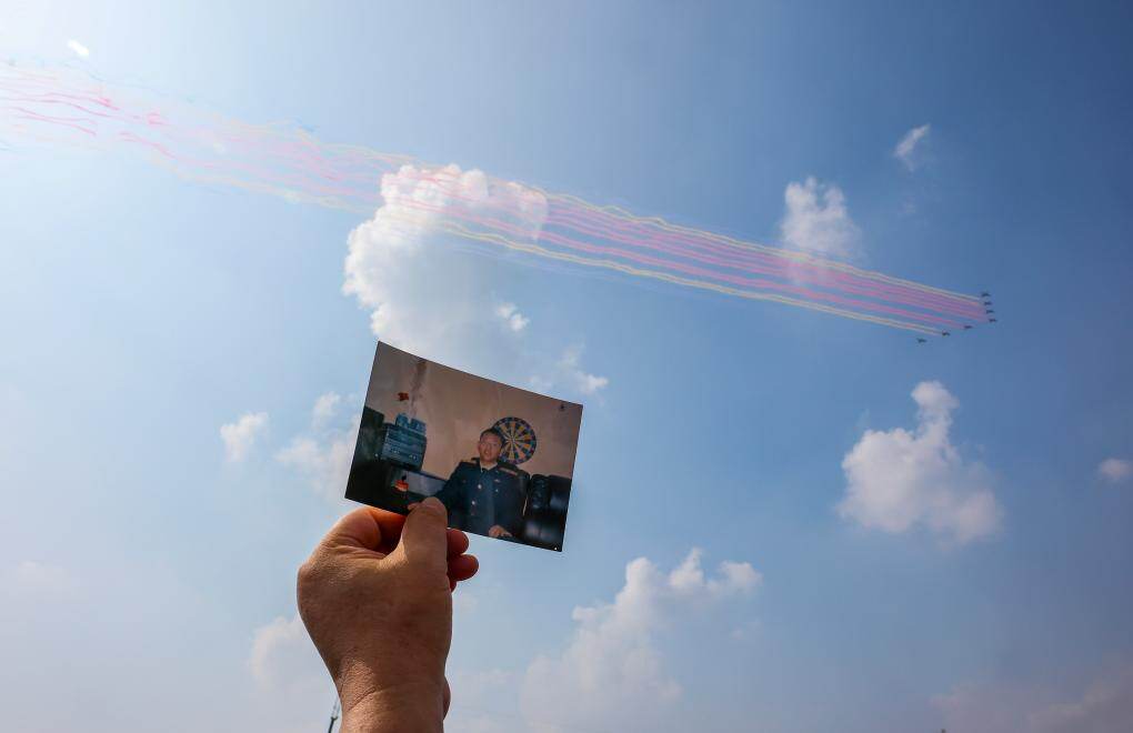 2025年9月3日,纪念中国人民抗日战争暨世界反法西斯战争胜利80周年大会在北京天安门广场隆重举行。当空中梯队飞过天安门广场时,王伟的妻子阮国琴在观礼台上把王伟的照片举向蓝天,她大声说:“王伟,你和战友们又见面了!”