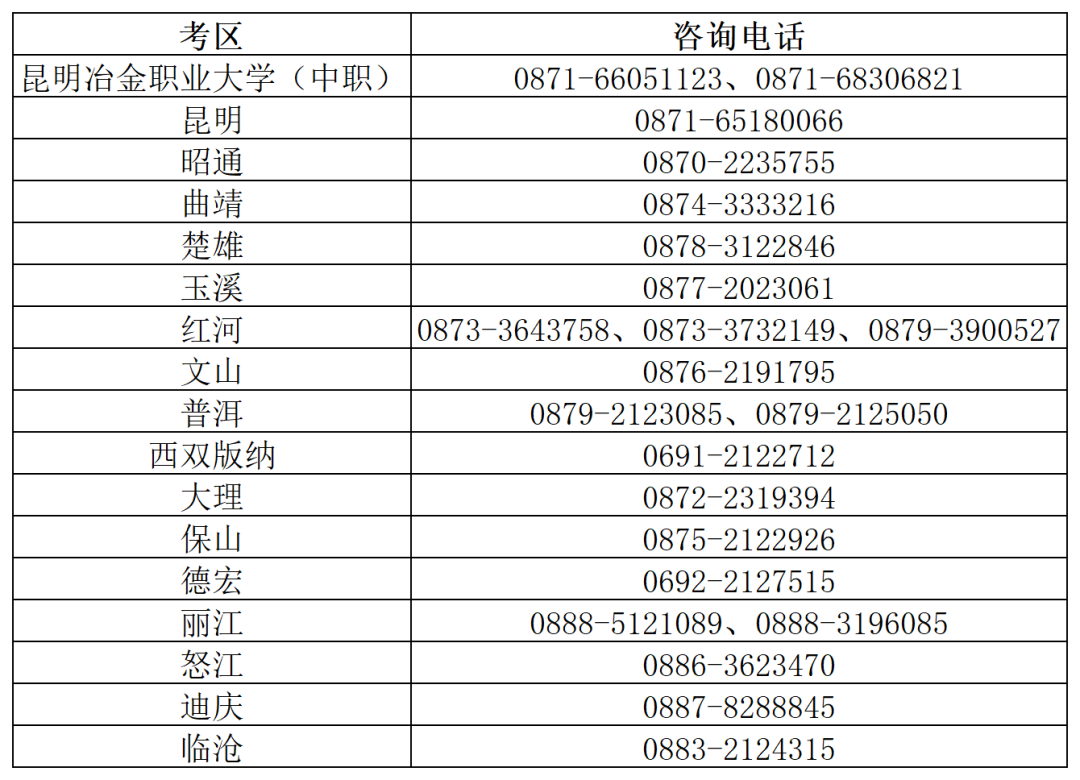 云南省2026年上半年中小学教师资格考试(面试)共设17个考区〔昆明冶金职业大学(中职)、昆明、昭通、曲靖、楚雄、玉溪、红河、文山、普洱、西双版纳、大理、保山、德宏、丽江、怒江、迪庆、临沧〕。请考生严格按要求选择对应的考区报考。考区选择注意事项: