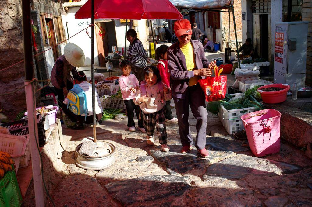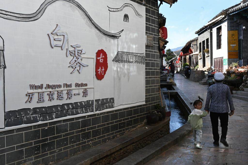 2026年3月24日,村民走在白雾村的古街上。