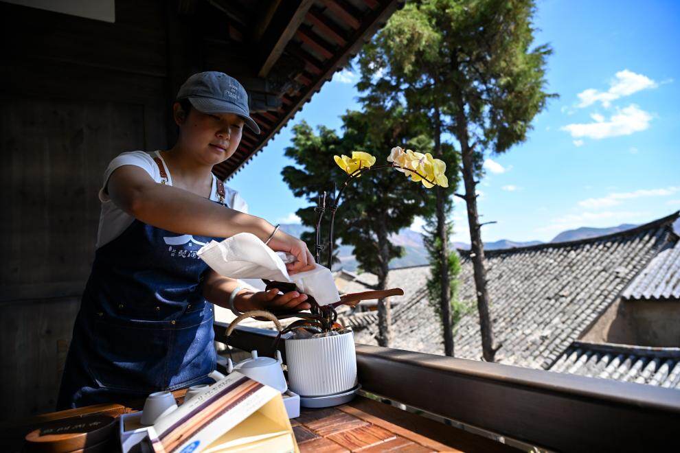 2026年3月24日,沈清秀在白雾村一家民宿打扫卫生。26岁的沈清秀是土生土长的白雾村人,之前在会泽县做销售工作,现在是白雾村一家民宿的管家。
