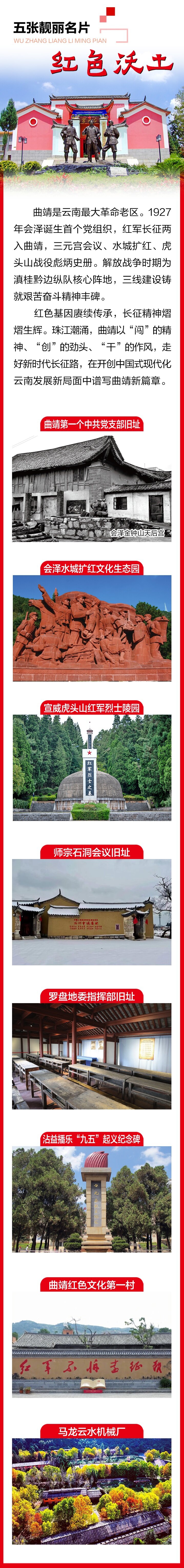 曲靖“五张靓丽名片”熠熠生辉,“珠江源头”名片源远流长、“世界最大的自然天成花园”名片美丽绽放、“古鱼王国”名片得天独厚、“红色沃土”名片历久弥新、“爨文化故乡”名片独具魅力,是这座城市的特质品牌。
