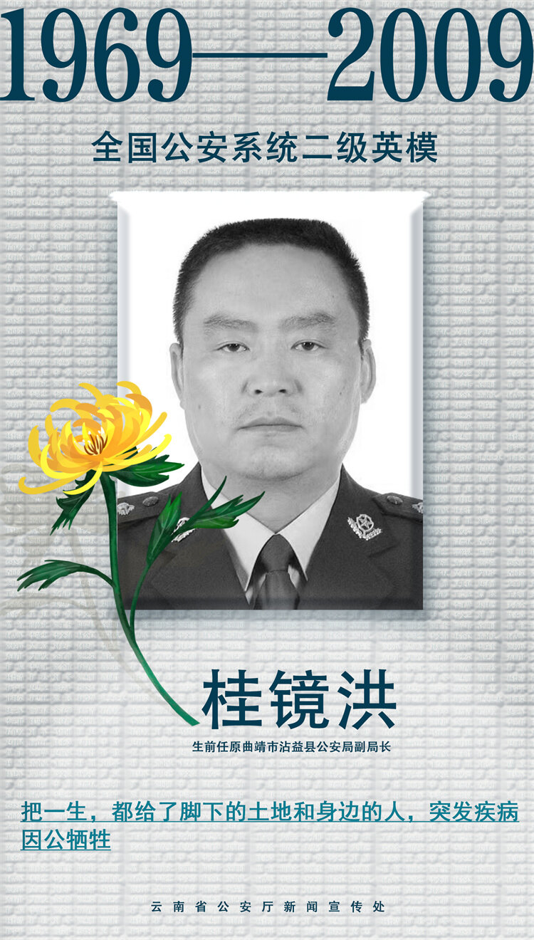 陈建军,纵身一跃,用血肉之躯托举起人民的生命;张从顺、张子权父子,两代人接力禁毒战场,用热血浇筑边境禁毒防线,续写不灭的英雄荣光;吴光林,缉毒抓捕中直面毒贩枪口,为掩护战友壮烈牺牲,用生命捍卫边境禁毒防线;桂镜洪,小事当大事办,破案快、执法严,用生命守护平安;和志虹,以巾帼之身奔赴维和战场,将生命永远留在了维和战场,她用忠诚诠释着中国警察的担当;柯占军,在刀锋上行走,用生命斩断毒源;张运,扎根基层,在平凡岗位上守护一方安宁,倒在了热爱的工作岗位;蔡晓东,在抓捕毒贩的殊死搏斗中,用身躯挡住罪恶的子弹,把生的希望留给战友……