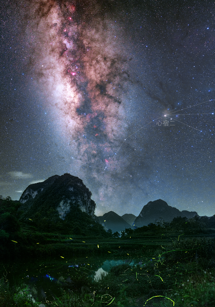 心宿二,属于著名的黄道星座——天蝎座,肉眼看上去明显发红,常被称为“天蝎座的心脏”。我国古代称心宿二为大火、商星,属于二十八星宿中的心宿,它是挂在天上的“温度计”,是古人判断季节的“指示星”,具有重要的天文与历法意义。
