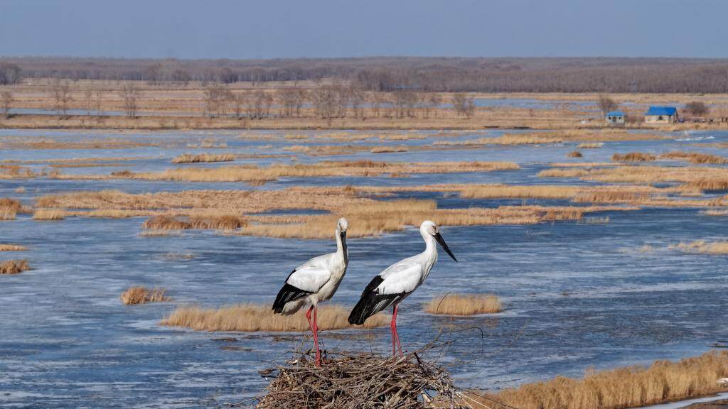 春风拂过松嫩平原,这里陆续迎来一批批北迁候鸟。在位于吉林省白城市镇赉县的莫莫格国家级自然保护区,广阔的湿地生机勃勃:成千上万只大雁掠过天际、白鹤成群在浅滩信步、东方白鹳衔枝修葺旧巢……