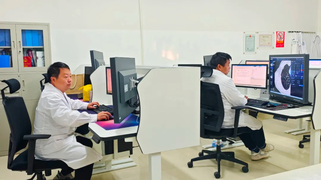 在弥渡县紧密型医共体影像诊断中心,医生正在通过医共体信息系统,对成员单位上传的影像出具诊断报告