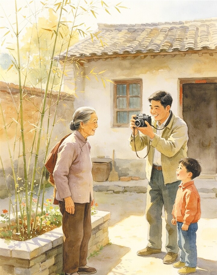 吃完饭,二哥想请赵成所为母亲照张相。赵成所一听乐了,说用这种照相机照相很简单,由二哥来为母亲照相最好。二哥看来是心里有底了,一点都没推辞,说了声“好啊”,就高兴地站起身,扶着母亲往后门走去。母亲在二哥的搀扶下,边走边说:“别照了,病成这个样子还照什么相?照出来丑死了!”二哥朗声笑着说:“不会丑!你今天精神特别好,照出相来会特别好看。”我也乐滋滋地附和二哥,劝母亲一定要照这张相。