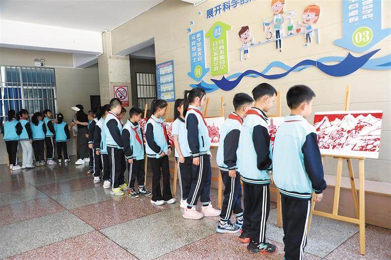 同学们在看红色手抄报。 窦盛根 摄