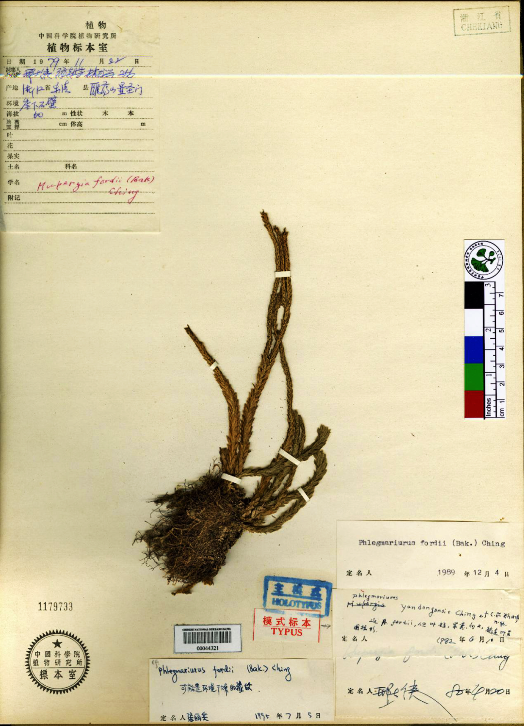 有关资料记载,福氏马尾杉在我国主要分布于云南、浙江、江西和福建等地,在云南的分布区域较狭窄。其通常附生于海拔100米至1700米的竹林下阴处、山沟阴岩壁、灌木林下岩石上,其模式标本存于中国科学院植物研究所标本馆。