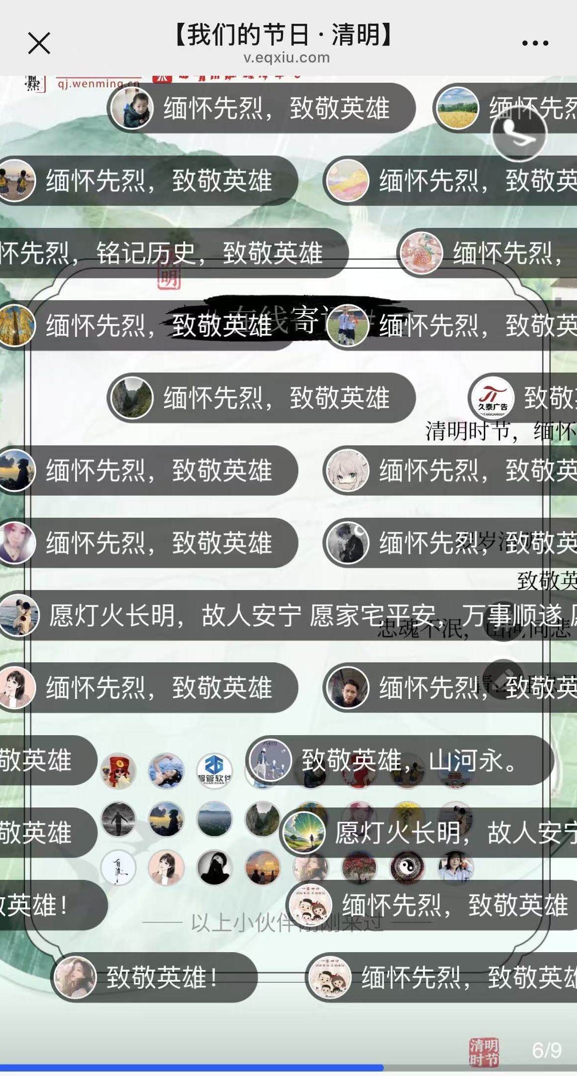 网上祭英烈活动既传承了清明时节慎终追远的优良传统,又践行了绿色低碳、文明安全的祭扫新风,让英烈精神在云端传递、在心中扎根。