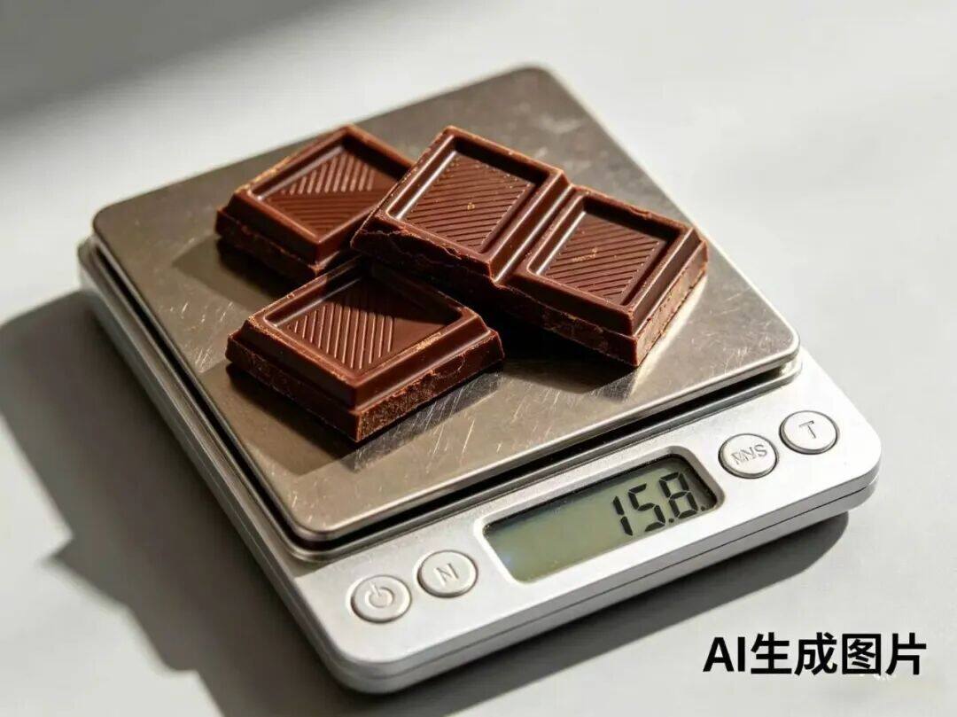 不过,黑巧克力的热量确实不低,可达600千卡/100克以上,即便只吃20克,也会摄入131千卡的热量,相当于多半碗蒸米饭,必须严格控制量,吃多照样会胖。选择可可含量70%以上的产品,避免添加大量糖和代可可脂的“假黑巧”。