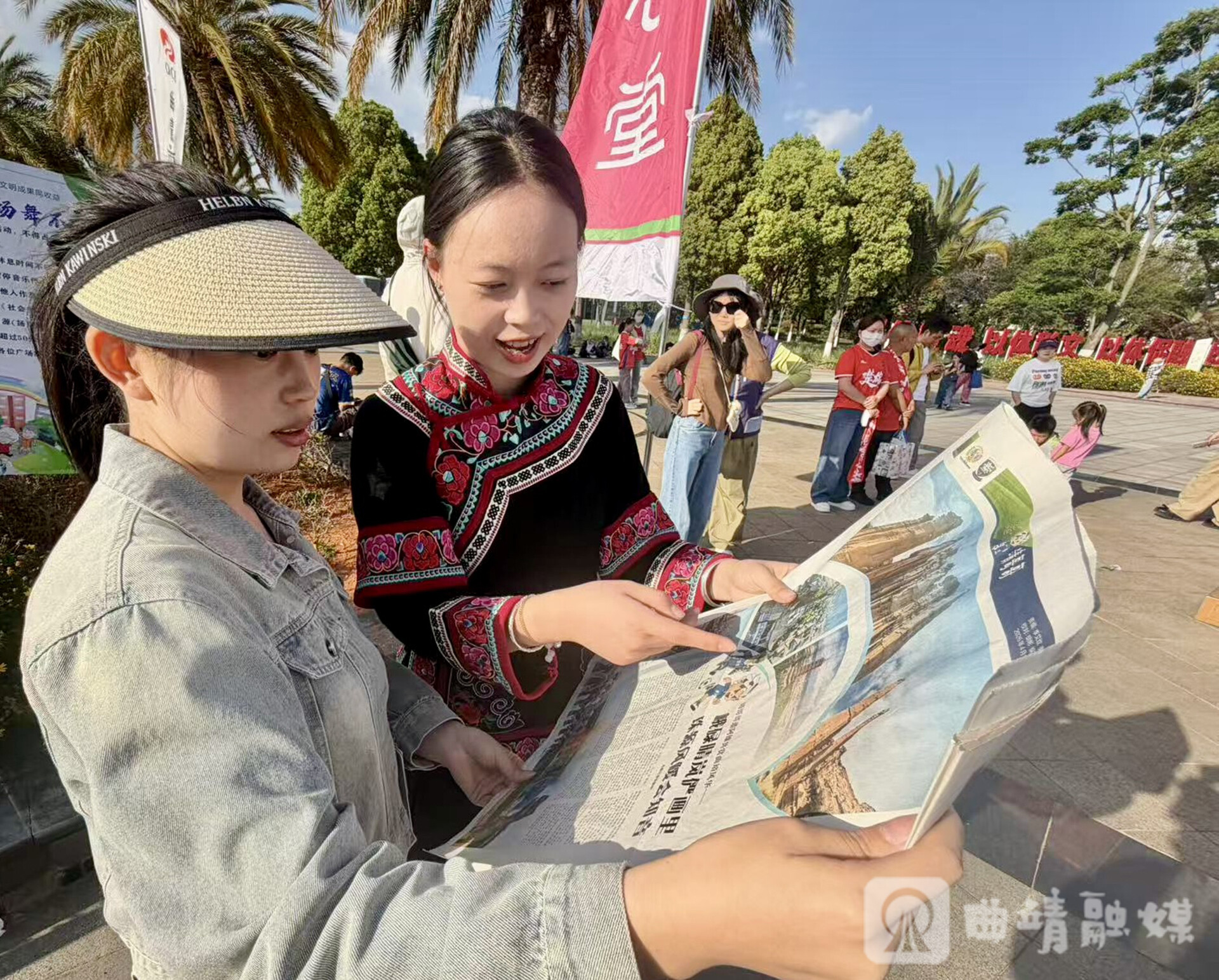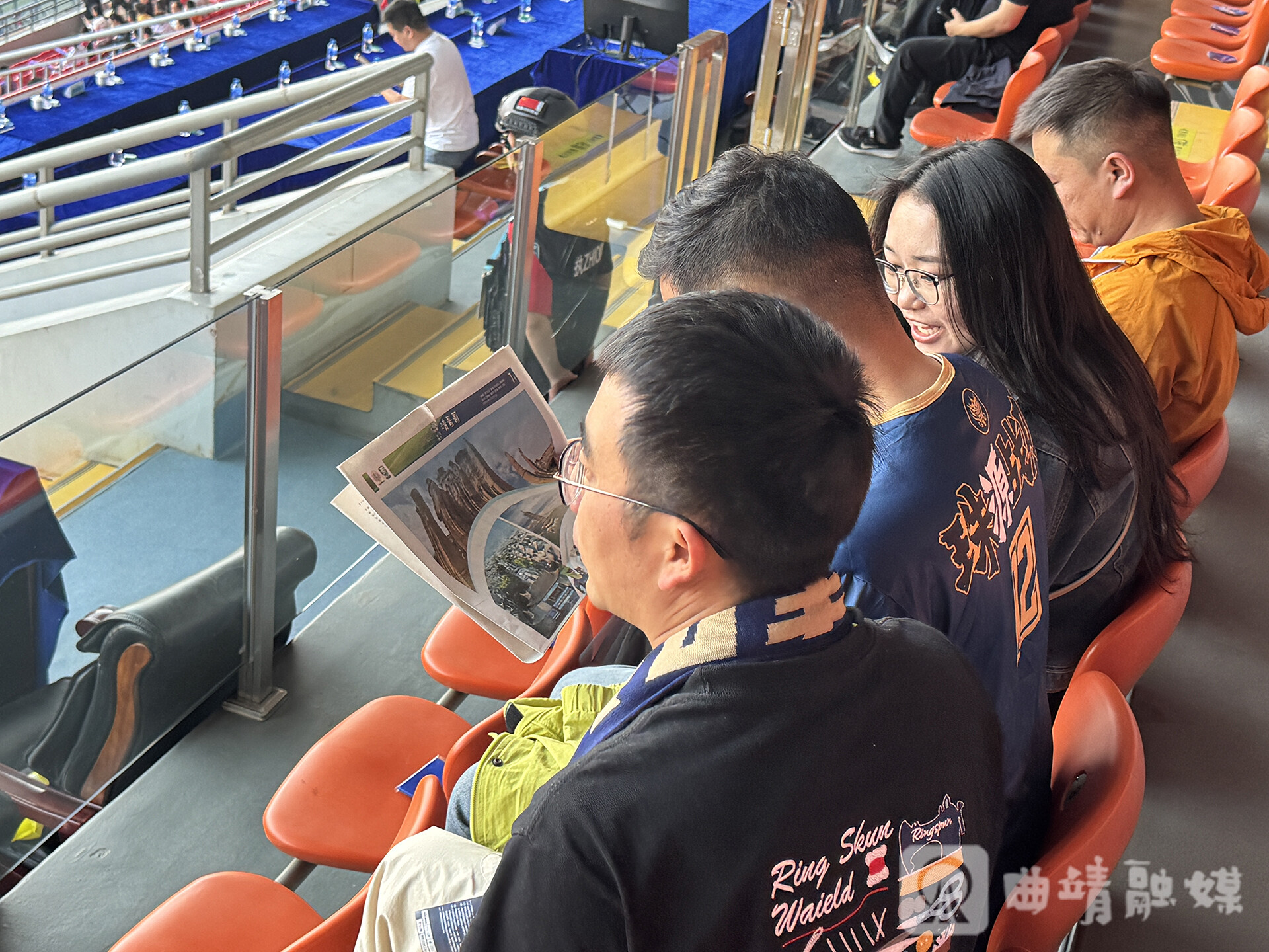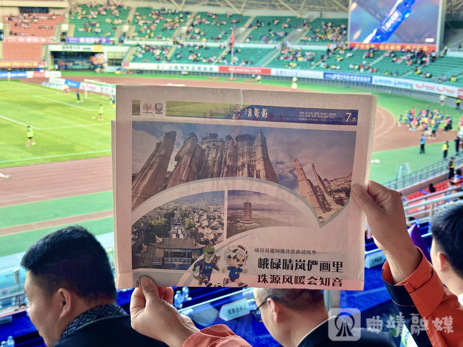 赛场之外,温情互动更显城市情谊——曲靖队将一份份刊载《靖哥哥邀阿雄共赏曲靖风华——峨碌晴岚俨画里 珠源风暖会知音》双城专版的《曲靖日报》,送至赛场互动区,以一纸墨香联结绿茵情谊,让竞技体育与人文交流交相辉映。