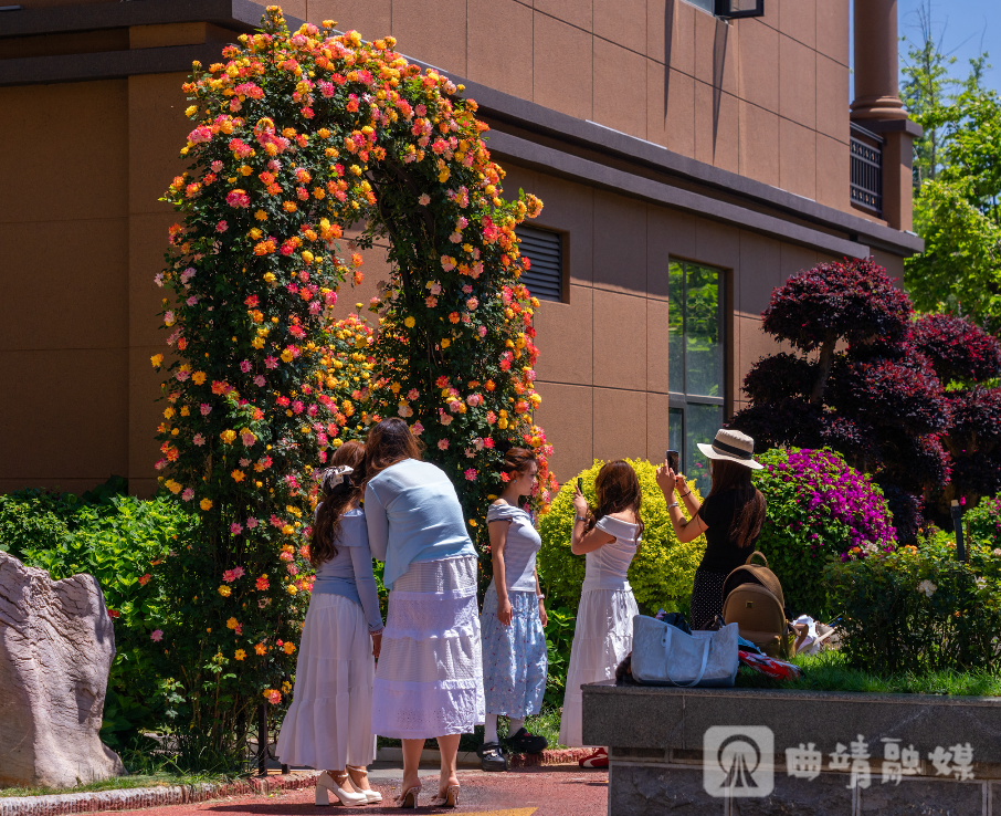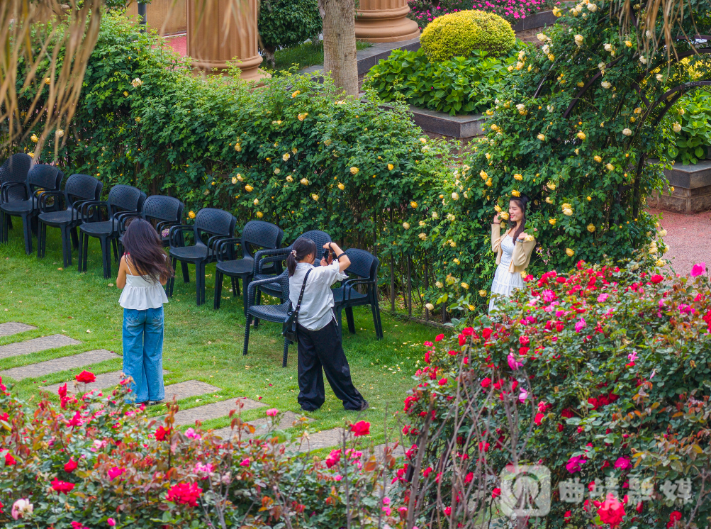 经开区泰丰路的蔷薇,好像是隐藏在“街巷里的浪漫秘境”,每年四月中旬蔷薇就会进入盛花期,这里品种繁多,垂坠的花瀑爬满院墙,白的如雪、粉的似霞,在阳光照射下格外娇艳。周边的酒店、民宿备受省内外游客青睐,很多游客就是为这片蔷薇花海而来。“刷到泰丰路的蔷薇视频,立刻约了朋友过来,住在这里每天推开窗就能看到蔷薇,拍照发朋友圈都被大家追问爆了。”重庆游客王女士说,她已经在曲靖待了三天,还计划去沾益珠江源探访源头风光。