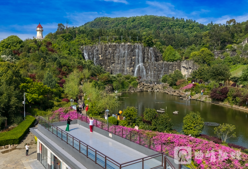 拥翠揽绿的河滨公园,瀑布裹挟着金色阳光潺潺流淌,岸边连片的鲜花顺着坡地肆意绽放。张女士笑着说,去年来的时候还没有观景台,只能站在步道上远远拍照,总觉得隔着一层距离,没法和美景真正“亲近”。今年公园新修的观景台正好架在瀑布侧前方,脚下便是整片花海,站在台上既能感受水雾拂面的清凉,又能让鲜艳的花簇成为拍照的天然背景,随手拍的画面都非常漂亮。“现在高铁通了,从四川过来只需几小时,周末抽个空就能来这看美景,比以前方便太多!”话音未落,她便拉着身边的同伴,要在观景台上多拍几张合影,将这份春日美好永久珍藏。