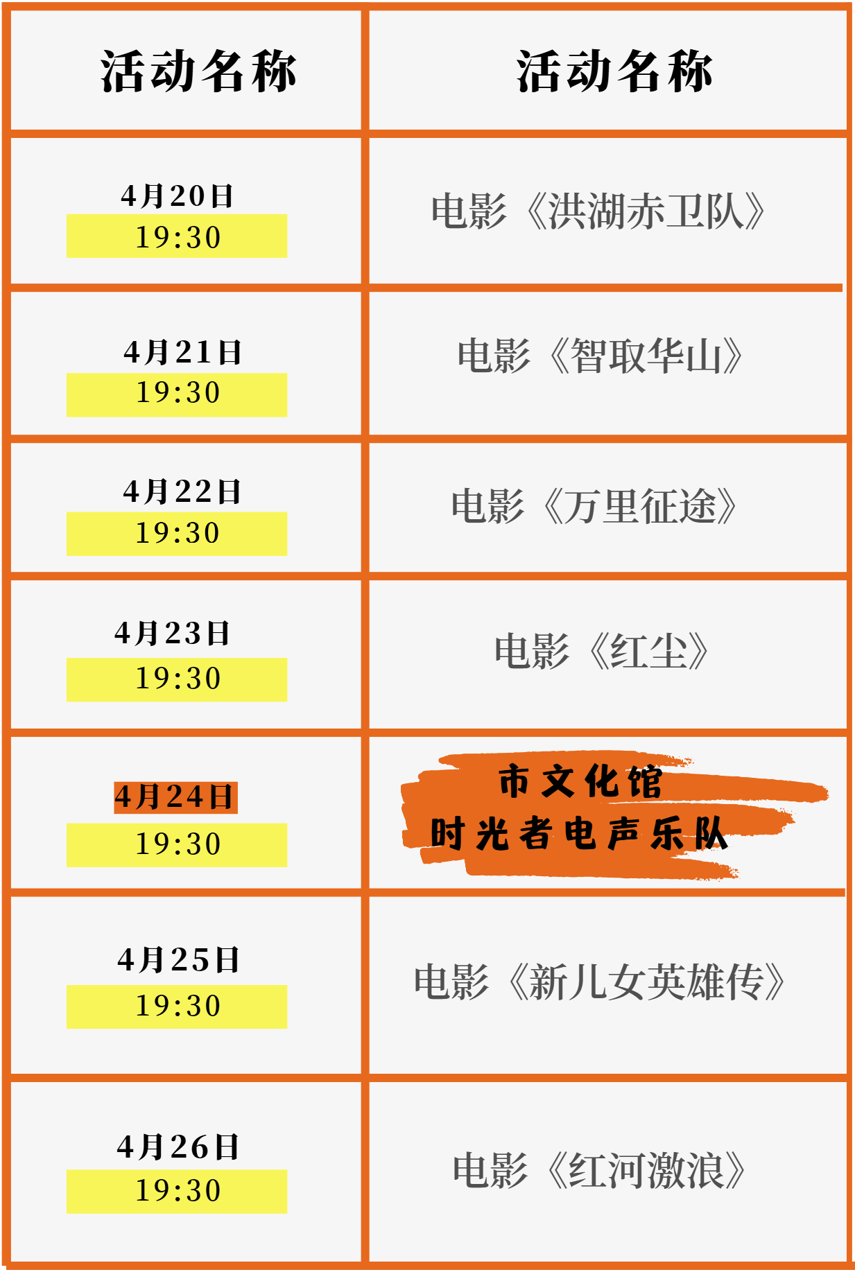 4月20日至4月26日,曲靖 “清风剧场” 精彩活动来袭,包括电影放映、电声乐队演出等,诚邀您一同迎接春日的美好时光。