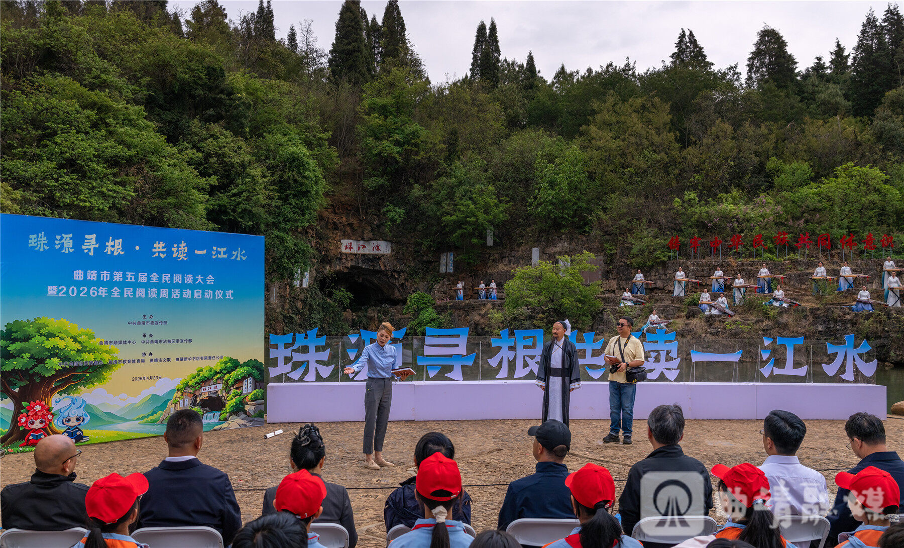 今年是《全民阅读促进条例》施行的第一年,也是首届“全民阅读活动周”落地之年。4月23日是第31个“世界读书日”,曲靖市第五届全民阅读大会暨2026年全民阅读周活动在此启幕。这次活动接续“珠源寻根•共情一江水”文化脉络,以“珠源寻根•共读一江水”为主题,融自然、文化、阅读于一体,让珠江源头的书香与江水共鸣,让文脉在古今对话中延续,让阅读从书本走向生活,成为曲靖这座城市最动人的文化风景。