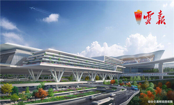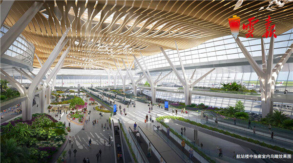 在综合交通枢纽方面,该方案基于交通一体化、布局集约化以及枢纽综合开发的原则,以T2航站楼和高铁站为核心展开布局,充分考虑渝昆高铁、滇中城际铁、市内轨道交通等设置,设立4个层级的立体交通,一主一辅双层通廊,单线串联的立体泊车,高效聚散的共享中庭,在枢纽内部通过换乘连廊,将航站楼、地铁站、高铁站、城际铁站、长途客运站等多种交通设施场站进行联结,实现多种交通方式的高效、一站式换乘。