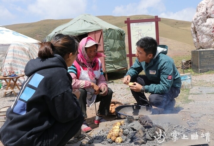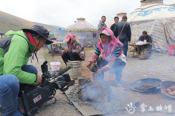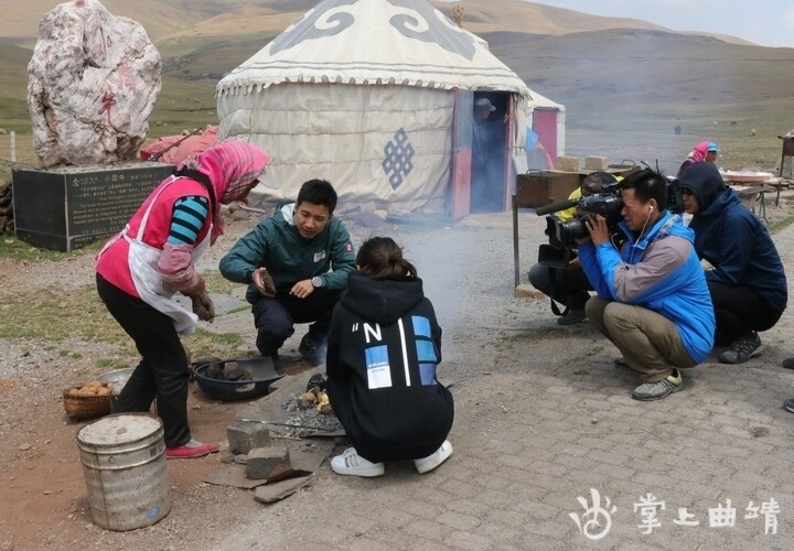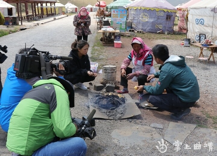 掌上曲靖讯 会泽大海草山牛屎粑烧洋芋因为烧制方式奇特而远近闻名。5月20日,央视中文国际频道《远方的家》栏目长江行系列摄制组来到大海草山,对会泽牛屎粑粑烧洋芋进行了拍摄。