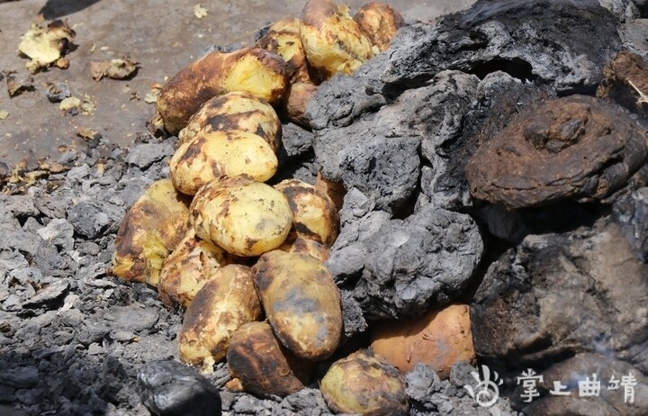 大海草山上因为大部分都是高山草甸,木材之类的燃料稀少,聪明的牧民们发现,随处可见的牛屎粑晒干后可以当作燃料,烧出来的洋芋不但没有牛屎的臭味,反倒有一种特殊的香味。因此,牛屎粑烧洋芋成了游客来大海草山游玩都不会忘记品尝的一道独特美食。