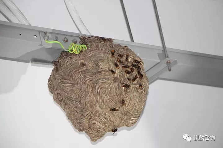 8月28日中午,北岸小学老师向太和派出所社区民警求助,称在学校教学楼四楼走廊排线管处发现一个悬挂的马蜂窝,请求派出所帮组处理。